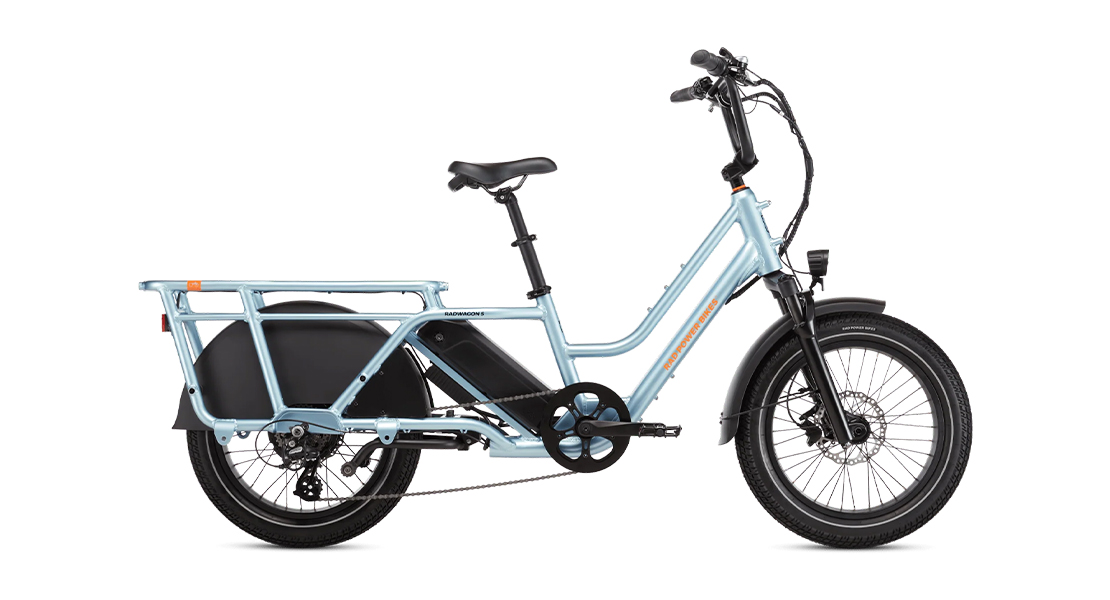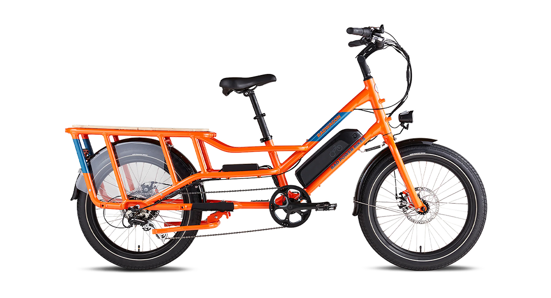 RadWagon electric cargo bikes carry passengers and gear with ease. Tackle hills and the town with its 350 lb. payload capacity, 750-watt motor, and 5 levels of pedal assist.